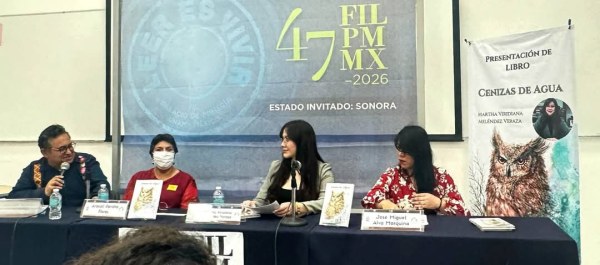 Cenizas de agua es una novela cimentada en la investigación sobre la cultura prehispánica y sus leyendas, basándose en el nahualismo. Contiene una crítica social y política, sobre el poder. Uno de los aspectos distintivos del libro es su propuesta interdisciplinaria. Su autora, M. Viridiana Meléndez Veraza, integra su formación como artista visual al proyecto literario y expuso el cuadro en el Palacio de Minería, en el marco de la FIL 47.