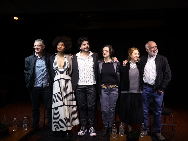 La actriz Emma Dib señaló que “la verdad es que no aprendemos nada, lo que se ha desatado con las nuevas decisiones de los pueblos… las guerras que se han desatado nuevamente sin importar lo que pasa con los niños, sin importar lo que pasó en la pandemia, es que no aprendemos nada… es en textos como este donde podemos tener nuestro oficio prodigioso de reflexionar sobre eso y mostrarlo a partir de la mirada del espectador…”