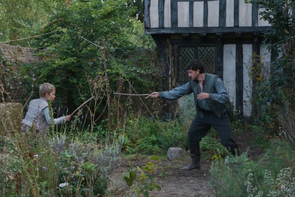 Los niños -y especialmente Hamnet, interpretado por un joven actor cuya presencia se siente tan orgánica como vulnerable- están trabajados con una delicadeza poco frecuente en el cine contemporáneo. No hay idealización ni manipulación emocional. Sus actuaciones son casi documentales, lo que vuelve aún más devastadora su fragilidad frente a la enfermedad y la muerte. La pérdida no se construye desde el golpe narrativo, sino desde la acumulación de gestos mínimos, de rutinas compartidas, de una cotidianeidad que se rompe sin aviso.
